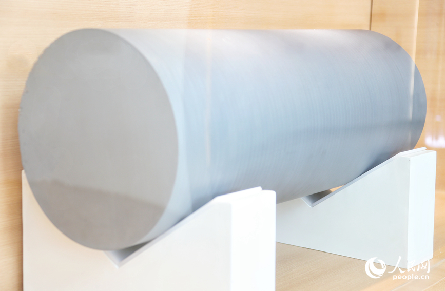 Photo shows a silicon ingot produced by Wafer Works (Zhengzhou) Corporation in the Zhengzhou Airport Economy Zone, Zhengzhou, central China's Henan Province. (People's Daily Online/Huo Yaping)
