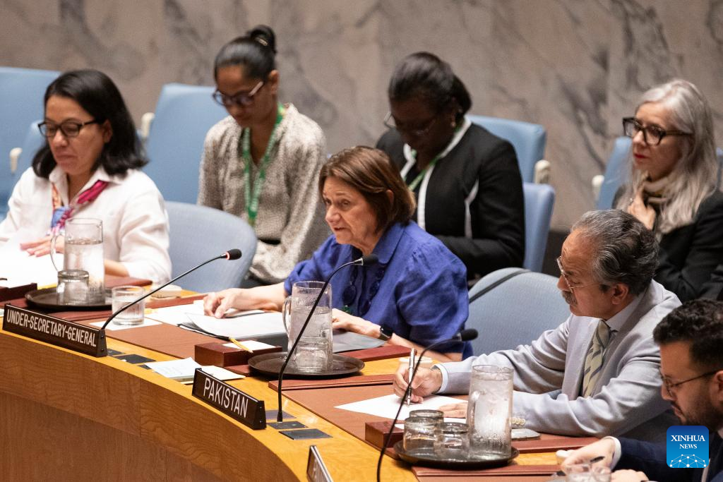 The UN Security Council holds a meeting on non-proliferation at the UN headquarters in New York, on June 24, 2025. UN Undersecretary-General for Political Affairs Rosemary DiCarlo on Tuesday called for diplomacy and dialogue to ensure the peaceful nature of Iran's nuclear program. (Xinhua/Xie E)