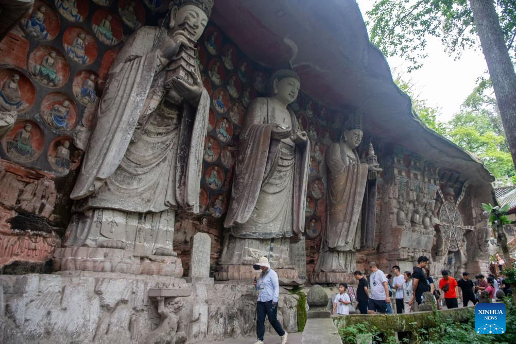 People visit the Dazu Rock Carvings scenic spot in southwest China's Chongqing Municipality, June 24, 2025. Dazu Rock Carvings, a UNESCO World Heritage Site in southwest China's Chongqing Municipality, is being injected with new vigor as various digital technologies are used for its protection and utilization.