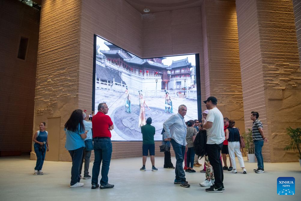 Technologies of AI, cloud computing, and big data, among others, were also applied to create 8K dome theater movies, VR experiences and programs alike to better entertain the tourists. (Xinhua/Tang Yi)
