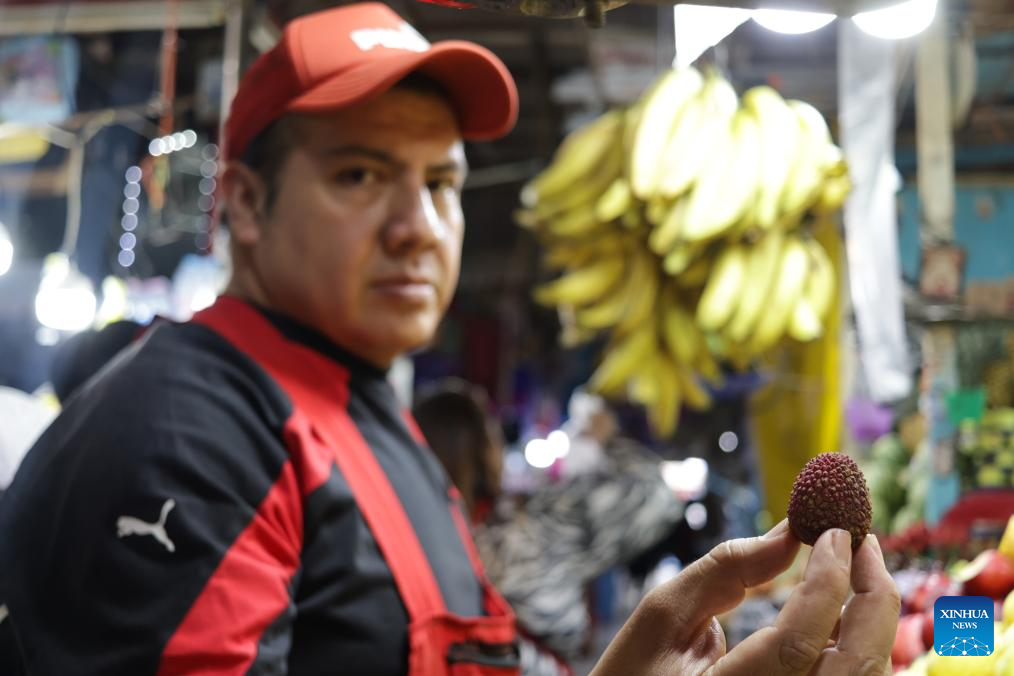 MEXICO CITY, June 25 (Xinhua) -- While China is going deep into summer, Mexico enters the rainy season of the year. In breaks of showery days, crowds hit the streets for sunshine and a sweet fruit from China -- lychee.