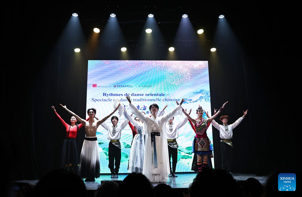 A traditional Chinese dance show is staged at the Theatre of the Eiffel Tower in Paris, France, June 24, 2025. (Xinhua/Gao Jing)