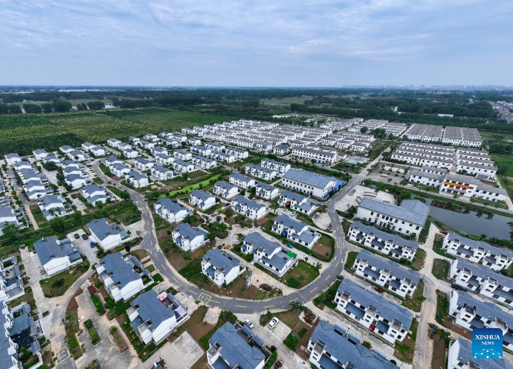 This aerial drone photo taken on June 23, 2025 shows a general view of Hanchen Village of Lianshui County in Huai'an City, east China's Jiangsu Province. (Xinhua/Li Bo)