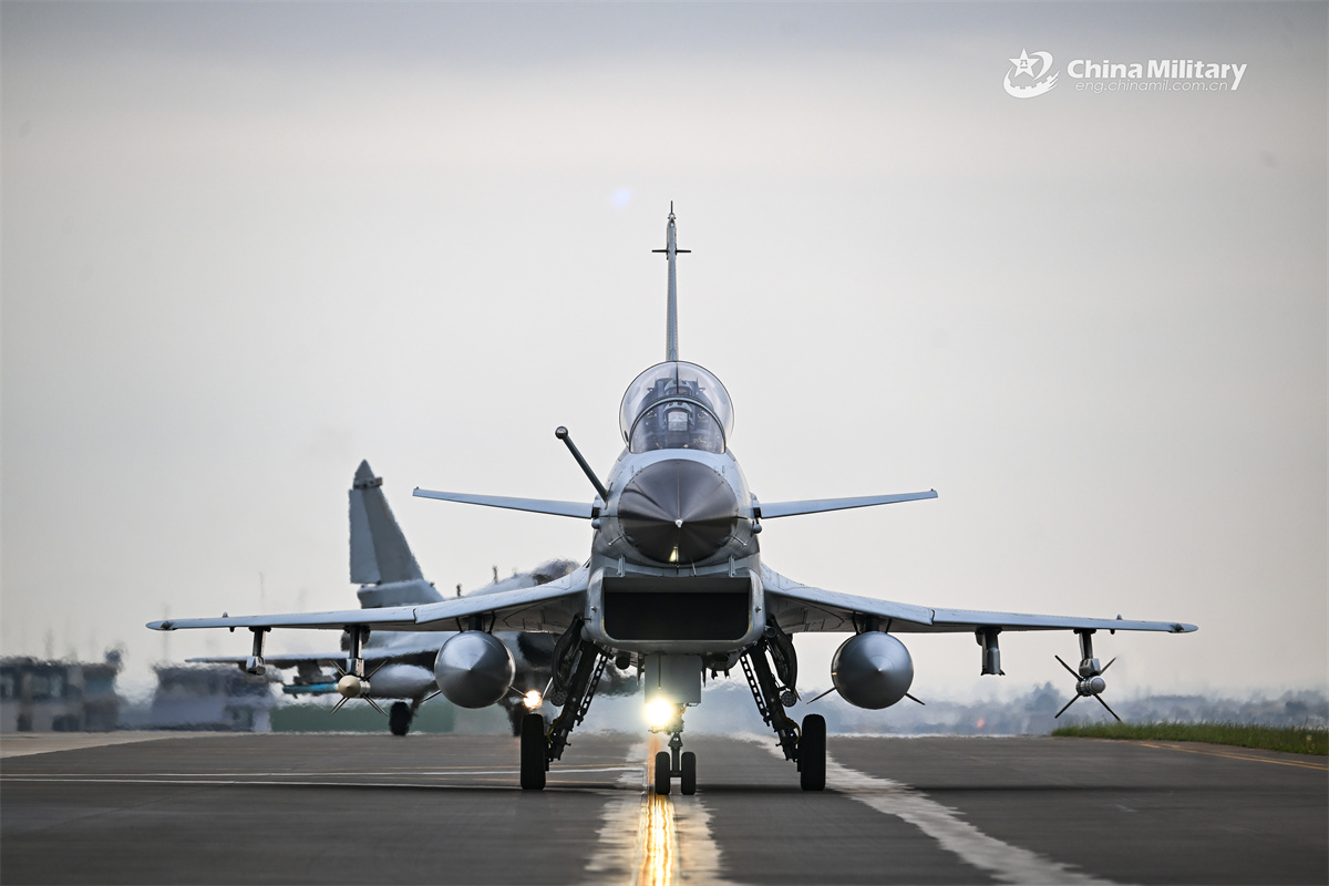 J-10 fighter jets attached to a unit under the Chinese PLA Air Force taxi on flightline in formation during a recent flight training exercise. (eng.chinamil.com.cn/Photo by Xiao Rui)