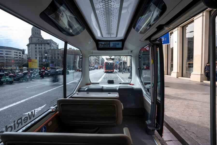This photo taken on March 11, 2025 shows an interior view of a WeRide Robobus operating in downtown Barcelona, Spain. (Xinhua)