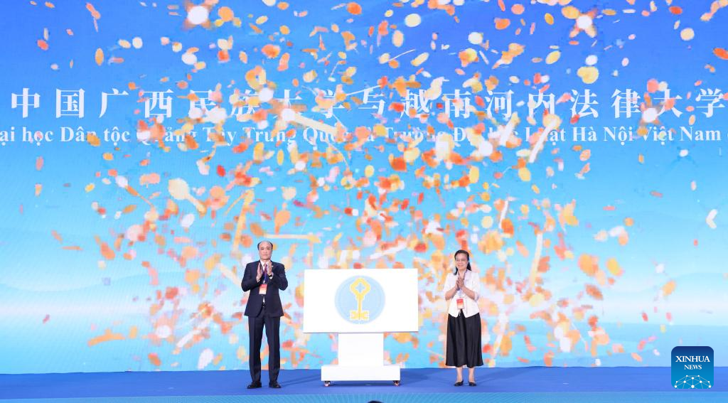 This photo taken on June 28, 2025 shows the opening ceremony of a border meeting held by Judicial administrative authorities from China and Vietnam, in Nanning, south China's Guangxi Zhuang Autonomous Region. Judicial administrative authorities from China and Vietnam held a border meeting from Saturday to Sunday in Nanning, capital of south China's Guangxi Zhuang Autonomous Region, to enhance cooperation. The meeting, the first of its kind, brought together nearly 150 participants from both countries, including officials from the justice departments, local judicial administrative organs, and legal professions. (Xinhua/Yin Gang)