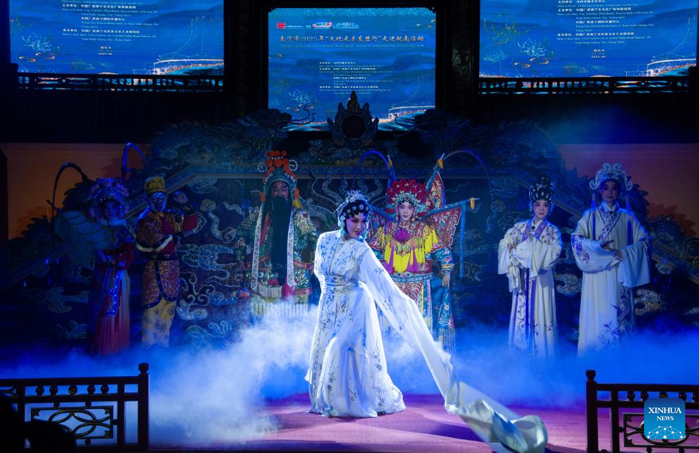 A traditional Chinese opera performance is staged in the central Vietnamese city of Hue on June 29, 2025. A troupe from China's Guangxi Zhuang Autonomous Region staged a traditional Chinese opera performance in the central Vietnamese city of Hue on Sunday. Held at the Royal Theater inside the Imperial City of Hue, the event showcased a variety of Chinese opera styles and attracted an audience including Chinese and Vietnamese officials as well as local residents. (Xinhua/Dang Hong Dung)