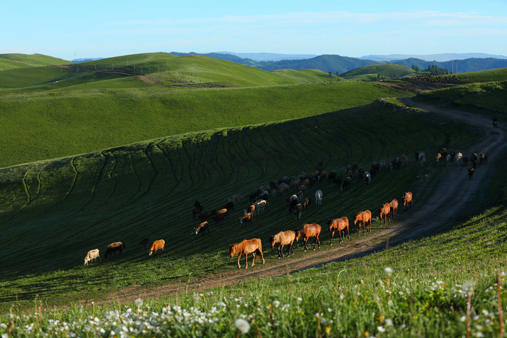 On June 24, 2025, herders in Altay, northwest China's Xinjiang Uygur Autonomous Region, drove their livestock to highland summer pastures. This year's summer migration began on June 22 and will last until June 30, involving a total of 600,000 head of livestock. (People's Daily Online/Liu Shihe)