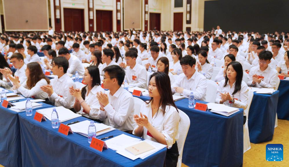 A congress of the All-China Students' Federation concludes in Beijing, capital of China, July 3, 2025. A session of the All-China Youth Federation and a congress of the All-China Students' Federation concluded on Thursday, which outlined the work for the next five years and elected new leaderships. (Photo by Tian Jiashuo/Xinhua)