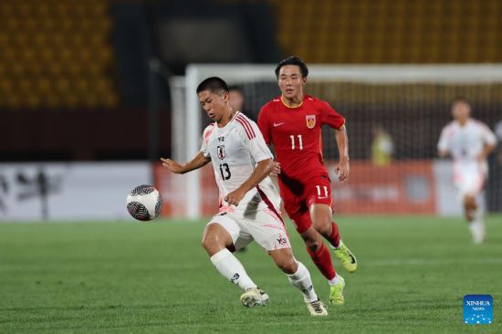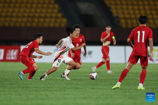 Satomi Tafuku (2nd L) of Japan competes during the CFA Team China Shenyang Peace Cup International Tournament 2025 football match between the U16 men's teams of China and Japan in Shenyang, northeast China's Liaoning Province, July 4, 2025. (Xinhua/Li Gang)