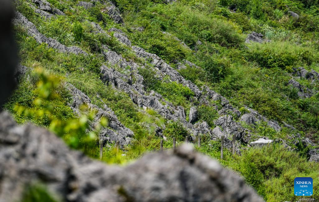 This photo taken on June 28, 2025 shows an area where ecological restoration measures are taken under a comprehensive management project of rocky desertification and biodiversity conservation in the Wumeng Mountain area in Liupanshui, southwest China's Guizhou Province. In recent years, Guizhou has made significant progress in ecological construction, striving to transform ecological advantages into developmental strengths.