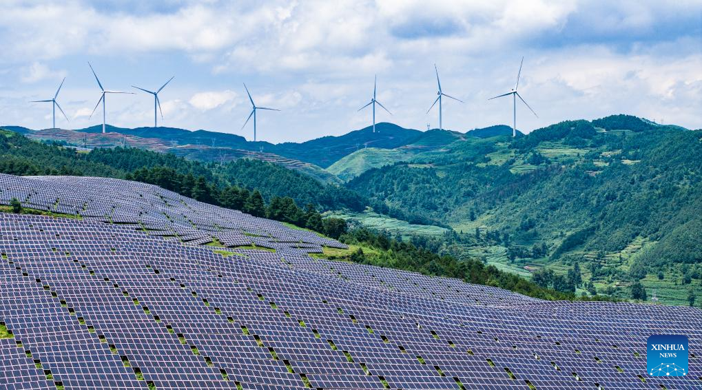 This photo shows photovoltaic panels of a solar power station for agricultural use in the Yi-Hui-Miao Autonomous County of Weining, southwest China's Guizhou Province, July 3, 2025. In recent years, Guizhou has made significant progress in ecological construction, striving to transform ecological advantages into developmental strengths.