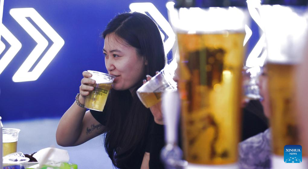 Visitors enjoy beer at the 23rd Harbin International Beer Festival in Harbin, northeast China's Heilongjiang Province, July 5, 2025.