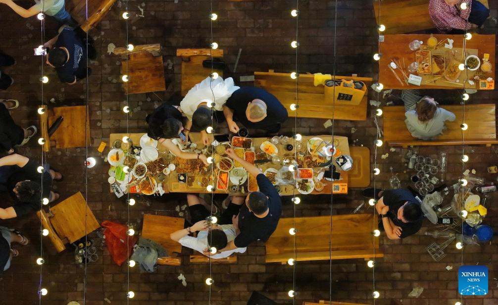 A drone photo shows visitors enjoying food and beer at the 23rd Harbin International Beer Festival in Harbin, northeast China's Heilongjiang Province, July 5, 2025.