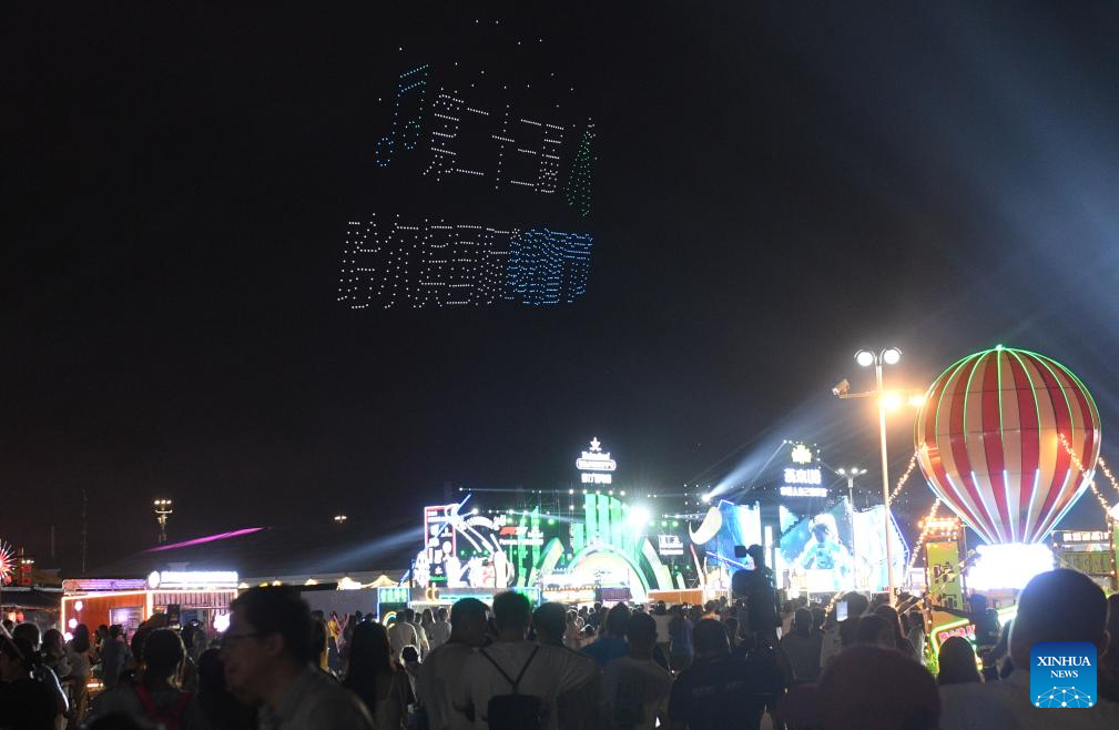 A drone light show is staged at the 23rd Harbin International Beer Festival in Harbin, northeast China's Heilongjiang Province, July 5, 2025.