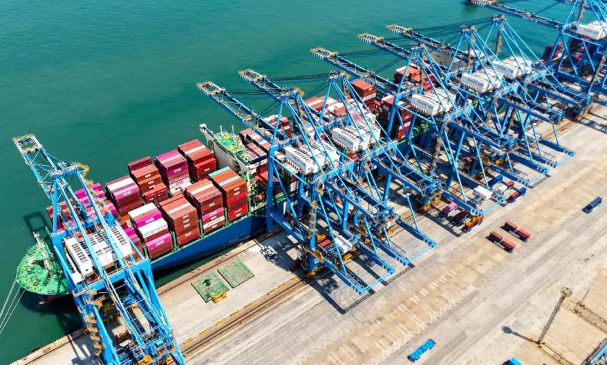 A cargo ship from South Korea is unloaded at an automated terminal of Qingdao Port in Qingdao, east China's Shandong province, June 17, 2025. (Photo by Zhang Jingang/People's Daily Online)