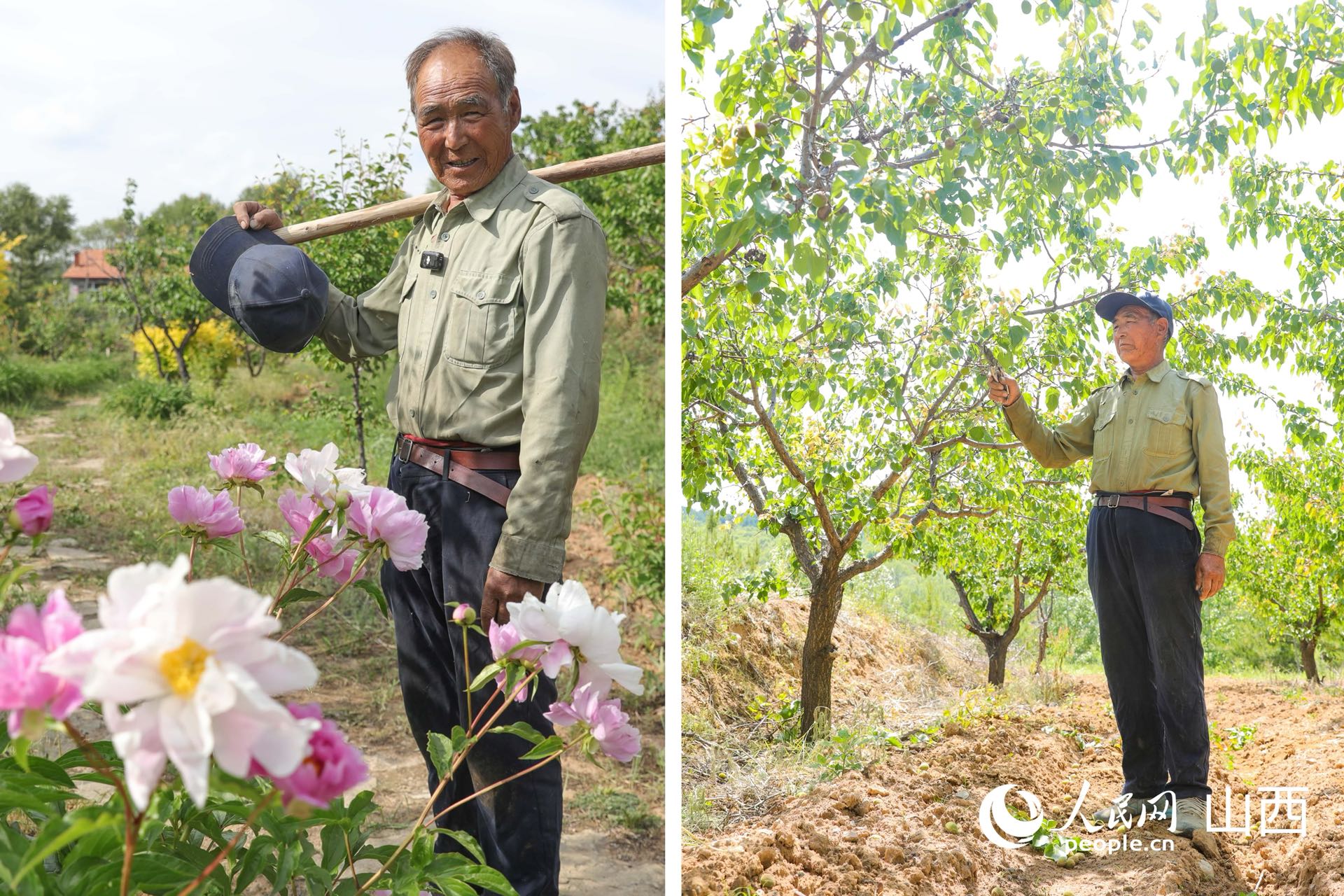 Photo shows Chinese peonies and apricot trees planted by Wang Zhanfeng in Shipao valley, Youyu county, Shuozhou city, north China's Shanxi Province. (People's Daily Online/Wang Fan)