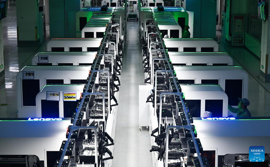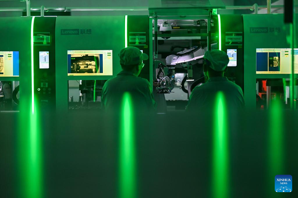 This photo taken on July 4, 2025 shows the laptop production line of the carbon-neutral smart manufacturing factory of Lenovo in north China's Tianjin. In recent years, Tianjin has been committed to building smart factories and accelerating the deep integration of the digital economy with the real economy. As of now, the city has established a total of 400 smart factories and digital workshops, continuously promoting the digital transformation of its manufacturing sector. (Xinhua/Zhao Zishuo)