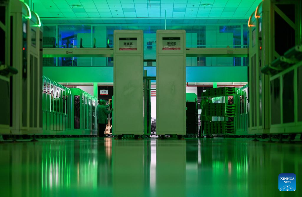 This photo taken on July 4, 2025 shows the laptop testing area of the carbon-neutral smart manufacturing factory of Lenovo in north China's Tianjin. In recent years, Tianjin has been committed to building smart factories and accelerating the deep integration of the digital economy with the real economy. As of now, the city has established a total of 400 smart factories and digital workshops, continuously promoting the digital transformation of its manufacturing sector. (Xinhua/Zhao Zishuo)