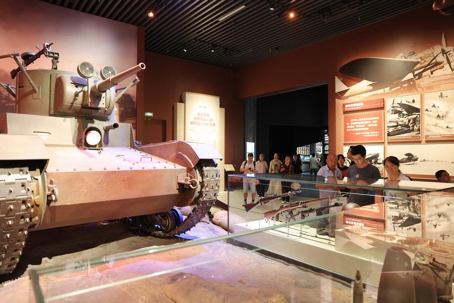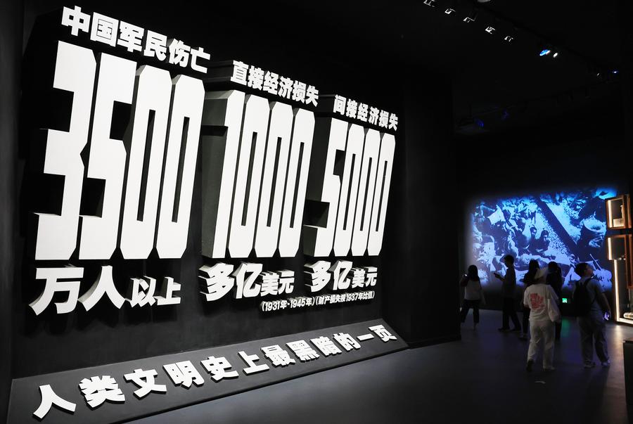 People visit an exhibition themed "For National Liberation and World Peace" at the Museum of the War of Chinese People's Resistance Against Japanese Aggression in Beijing, capital of China, July 8, 2025. (Xinhua/Ju Huanzong)