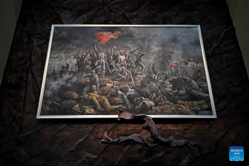 This photo taken on July 7, 2025 shows an oil painting displayed at the memorial hall commemorating the Hundred-Regiment Campaign in Yangquan, north China's Shanxi Province. The Hundred-Regiment Campaign took place in northern China from August 1940 to January 1941 during the Chinese People's War of Resistance Against Japanese Aggression. (Xinhua/Zhan Yan)
