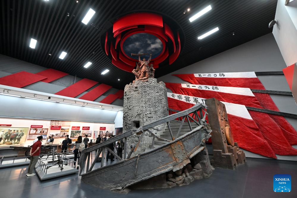 This photo taken on July 7, 2025 shows an interior view of the memorial hall commemorating the Hundred-Regiment Campaign in Yangquan, north China's Shanxi Province. The Hundred-Regiment Campaign took place in northern China from August 1940 to January 1941 during the Chinese People's War of Resistance Against Japanese Aggression. (Xinhua/Zhan Yan)