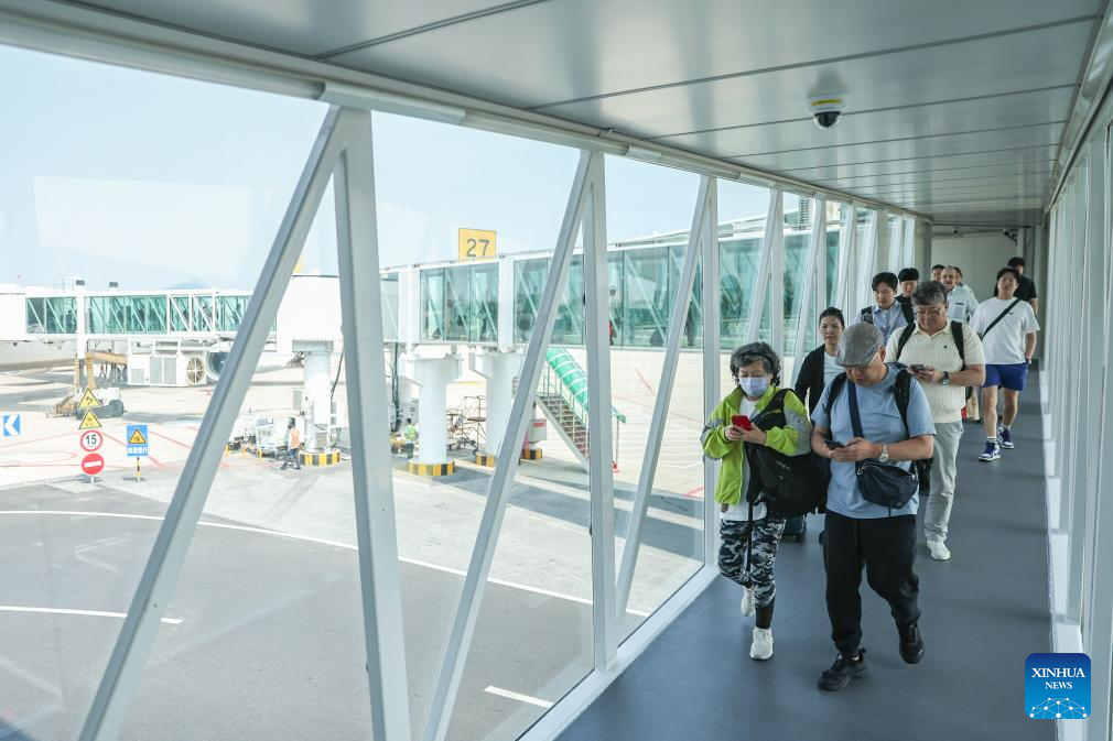 Passengers arrive at Zhoushuizi International Airport in Dalian, northeast China's Liaoning Province, July 9, 2025. Thanks to China's visa-free policies and related measures, the number of inbound travelers at Zhoushuizi International Airport has seen steady growth in the first half of 2025. The airport handled approximately 668,000 inbound and outbound passengers during this period, marking a 23.1 percent year-on-year increase. Among them, 89,000 were inbound foreign visitors, representing a 53.4 percent surge compared to the same period of the previous year. (Xinhua/Pan Yulong)