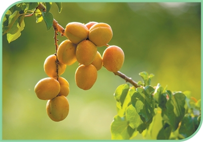 Photo shows a tree branch laden with apricots in Yingjisha county, Kashgar, northwest China's Xinjiang Uygur Autonomous Region. (Photo/Wang Qing)