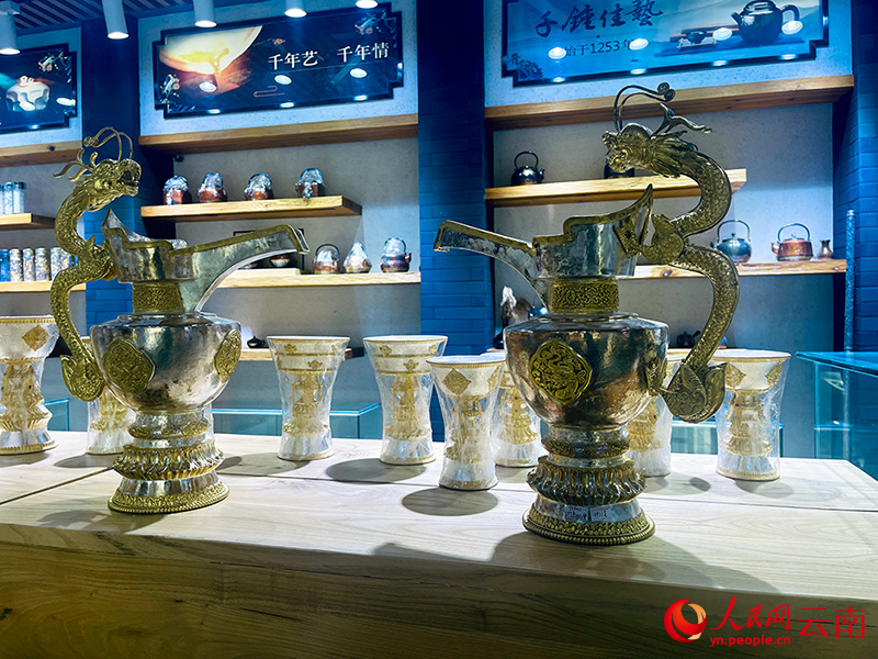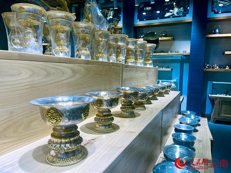 Photo shows silverware produced by an ethnic jewelry factory in Caohai town, Heqing county, Dali Bai Autonomous Prefecture, southwest China's Yunnan Province. (People's Daily Online/Cheng Hao)