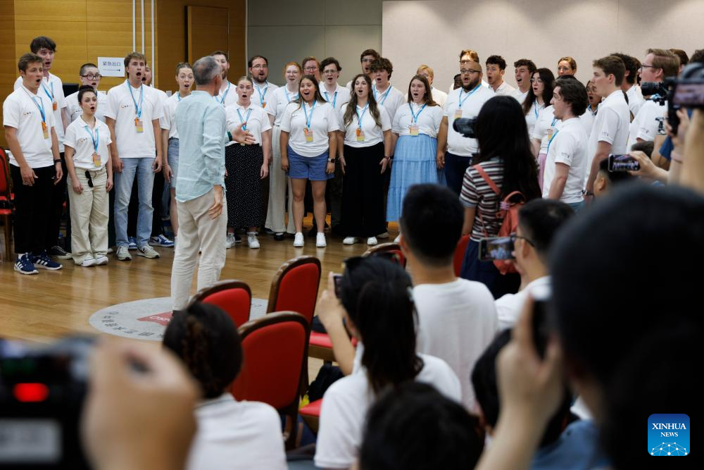 Choir members from a Chinese middle school perform in Beijing, capital of China, July 14, 2025. Bond with Kuliang: 2025 China-U.S. Youth Choir Festival, with the theme of "Singing for Peace," is held in Beijing and Fuzhou from July 9 to 18.