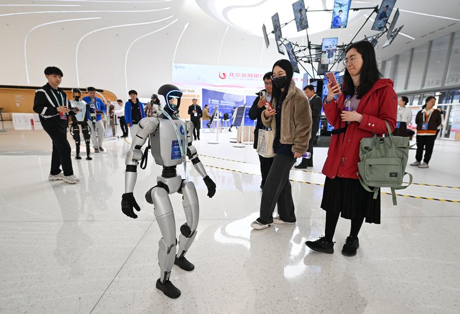 People take photos of a Unitree's G1 humanoid robot at Zhongguancun International Innovation Center in Beijing, capital of China, March 26, 2025. (Xinhua/Chen Zhonghao)
