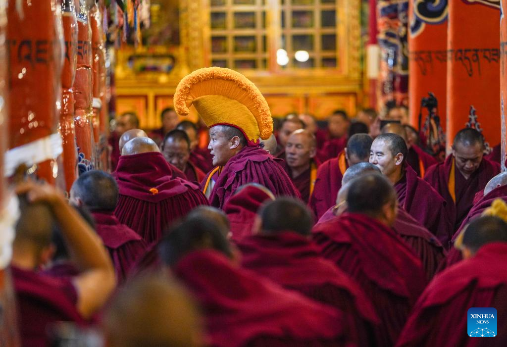 LHASA, July 15 (Xinhua) -- A total of 13 monks from multiple monasteries are in the process of completing a preliminary examination for the Geshe Lharampa, the highest academic degree in the exoteric teachings of the Gelug school of Tibetan Buddhism.