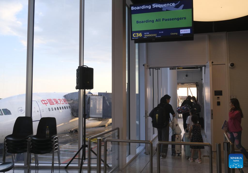 Passengers queue to board the Flight MU708 to Shanghai of China at the Copenhagen Airport, in Copenhagen, Denmark, on July 17, 2025. China Eastern Airlines on Thursday launched a new direct route between China's Shanghai and Denmark's Copenhagen, strengthening air connectivity between the two countries. (Xinhua/Zhang Yuliang)
