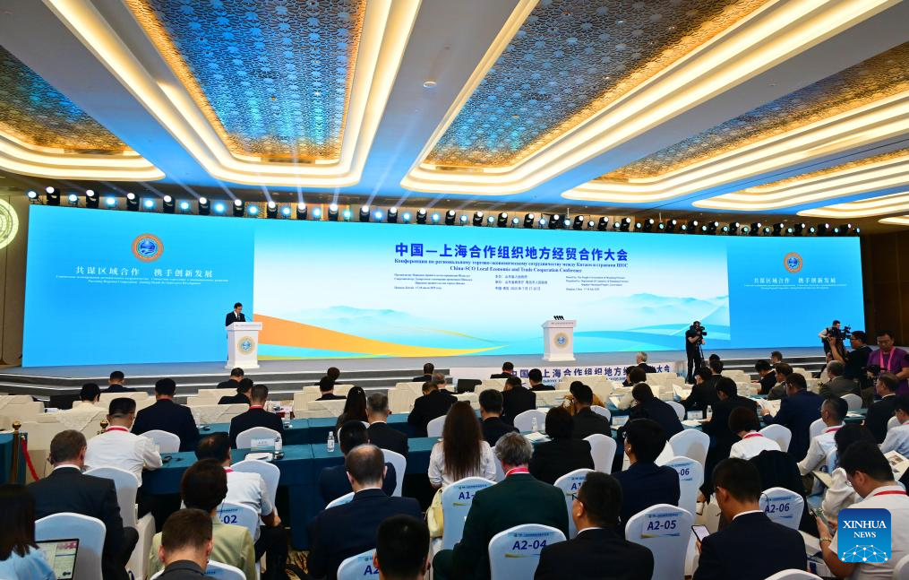 This photo shows the opening ceremony of the 2025 Shanghai Cooperation Organization (SCO) International Investment and Trade Expo in Qingdao, east China's Shandong Province, July 18, 2025. Under the theme "Sharing New Opportunities, Seeking New Common Development," the expo kicked off on Friday in Qingdao. (Xinhua/Li Ziheng)