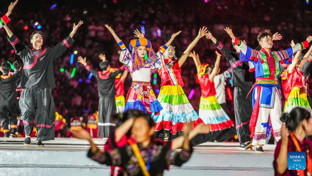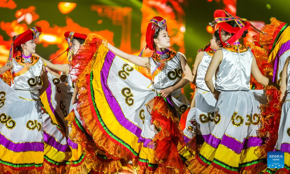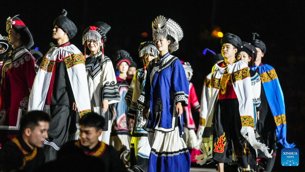 Artists perform at the celebration for the Torch Festival of Yi ethnic group held in Shuicheng District of Liupanshui, southwest China's Guizhou Province, July 18, 2025. Celebrations for the Torch Festival of Yi ethnic group kicked off on Friday at a tourist resort in Shuicheng District of Liupanshui, attracting tourists from across the country. A series of related activities will also take place here on or before Aug. 17. (Xinhua/Tao Liang)