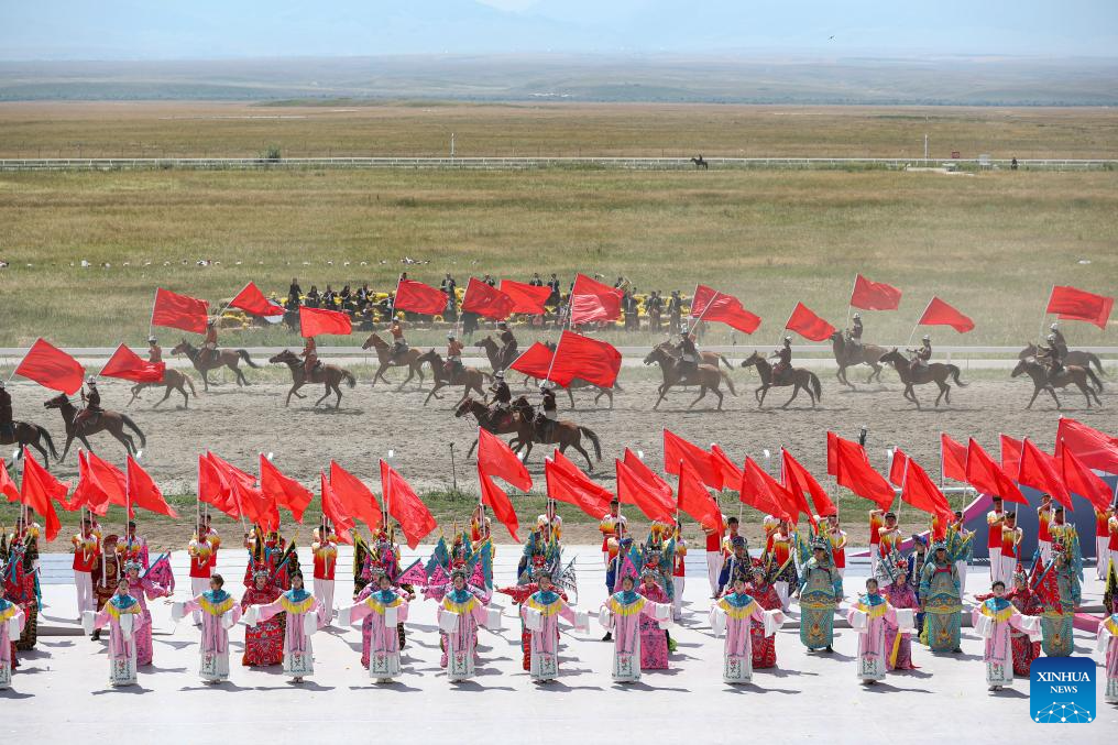 A performance is staged during a tourism festival in Zhaosu, northwest China's Xinjiang Uygur Autonomous Region, July 19, 2025. (Xinhua/Xu Xiaoxuan)