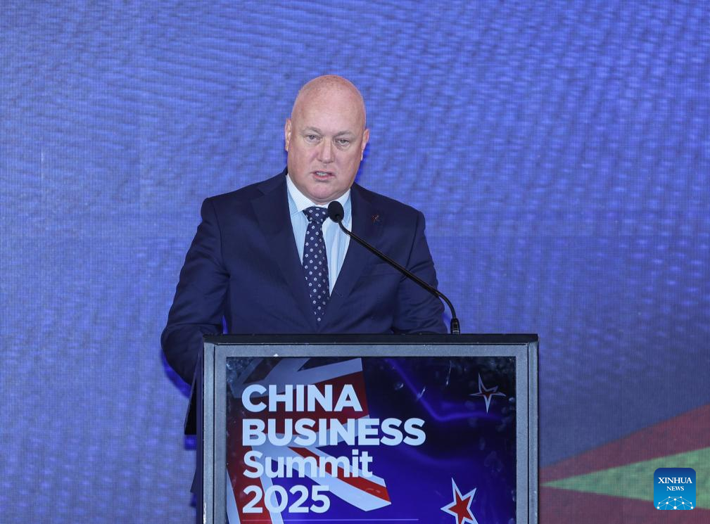 New Zealand Prime Minister Christopher Luxon addresses the China Business Summit 2025 in Auckland, New Zealand, July 18, 2025. The China Business Summit 2025 was held in Auckland on Friday. (Xinhua/Long Lei)