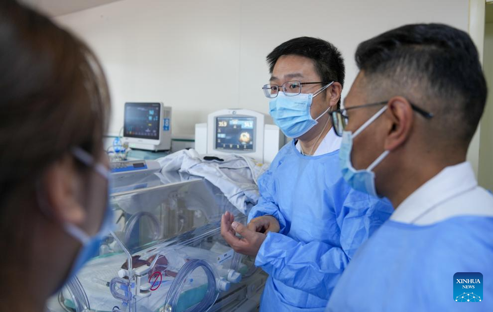 Doctor Tian Congliang (2nd L) from the First Affiliated Hospital of Dalian Medical University discusses a premature baby case with his colleagues at Nagqu Renmin Hospital in Nagqu City, southwest China's Xizang Autonomous Region, July 18, 2025. Since 2016, Liaoning Province has sent 150 medical experts in 9 batches to Nagqu. They have contributed to the training of 225 local medical staff members and the improvement of local medical treatment level. (Xinhua/Jigme Dorje)
