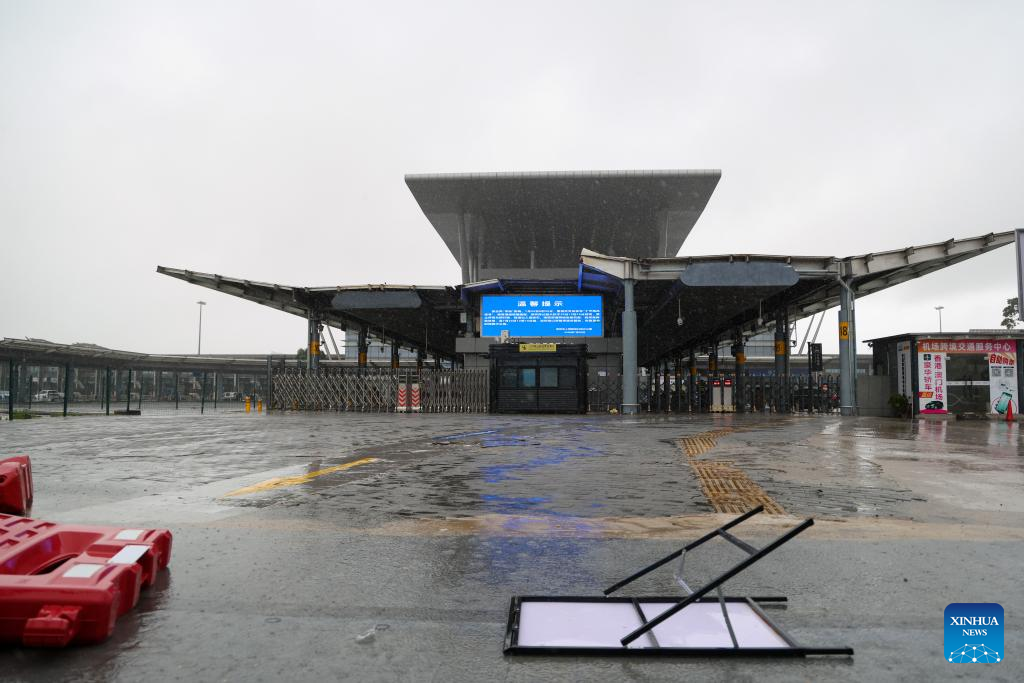 Clearance services are suspended ahead of the landfall of Typhoon Wipha at the Shenzhen Bay Port suspends its in Nanshan District of Shenzhen, south China's Guangdong Province, July 20, 2025. Typhoon Wipha, the sixth typhoon of the year, made landfall near Jiangmen City in south China's Guangdong Province around 5:50 p.m. on Sunday, according to the Guangdong provincial meteorological observatory.