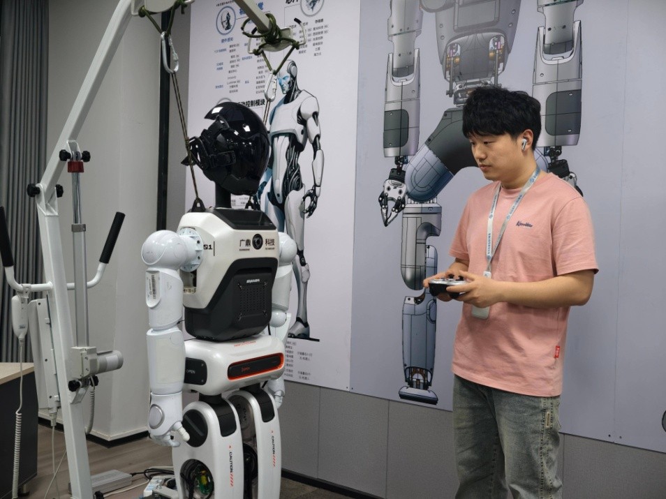 A technician debugs a newly developed humanoid robot at a tech firm based in Bengbu, east China's Anhui province. (People's Daily Online/Li Bin)