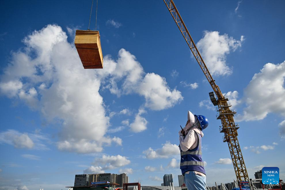 Workers work at the construction site of the Nantong Railway Station in Nantong, east China's Jiangsu Province, July 21, 2025. The station is along a high-speed railway linking Shanghai, Nanjing of Jiangsu Province and Hefei of Anhui Province in east China. (Xinhua/Ji Chunpeng)