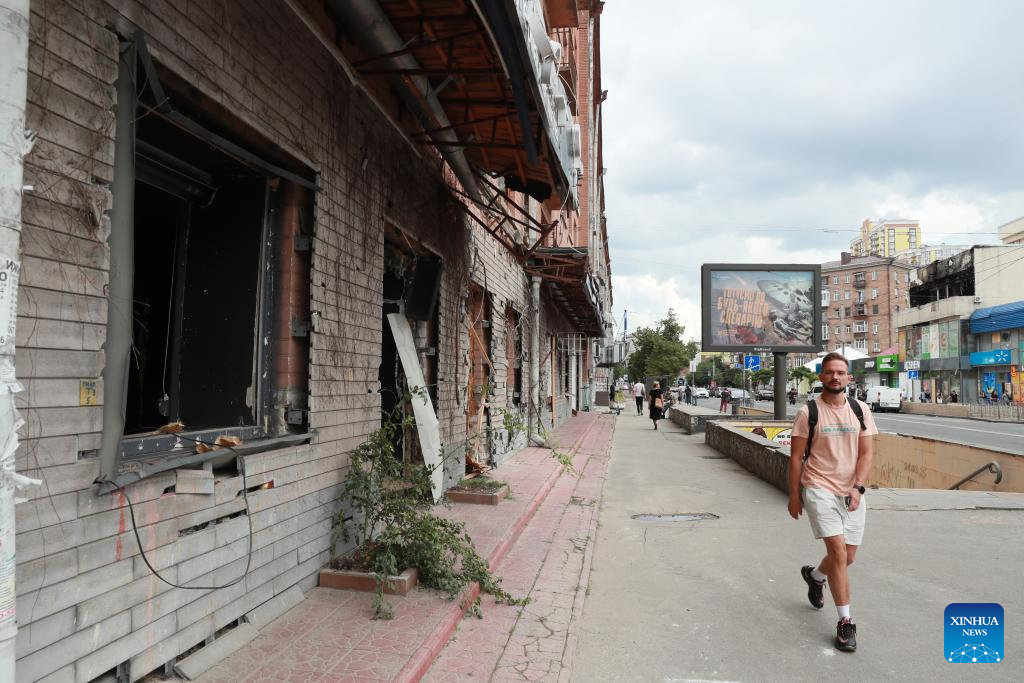 A man walks past a damaged store after an air strike near a metro station in the Shevchenkivskyi district of Kiev, Ukraine, July 21, 2025. Two people were killed and 15 others injured in a wave of Russian missile and drone strikes on Ukraine's capital and the western region of Ivano-Frankivsk early Monday, said Ukrainian authorities.