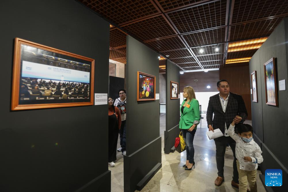 People visit a news photo exhibition in Mexico City, Mexico, July 18, 2025. The news photo exhibition, co-organized by Xinhua News Agency and the Mexican Chamber of Deputies, kicked off here on July 18. (Photo by Francisco Canedo/Xinhua)