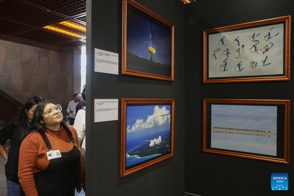Guests visit a news photo exhibition in Mexico City, Mexico, July 18, 2025. The news photo exhibition, co-organized by Xinhua News Agency and the Mexican Chamber of Deputies, kicked off here on July 18. (Xinhua/Li Mengxin)