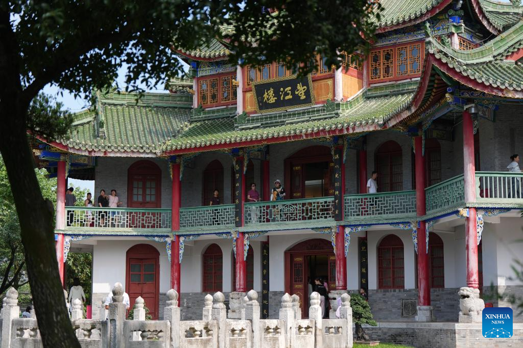 This photo shows the Wuhouci Shrine in Mianxian County in Hanzhong, northwest China's Shaanxi Province, July 22, 2025. Hanzhong is nestled between the Qinling and Daba Mountains, with the Hanjiang River, a tributary of the Yangtze River, flowing through the city. For more than 2,300 years, it has served as a vital nexus for the river network and transportation routes connecting the north and south. The city is rich in resources and, unlike other areas in Shaanxi, it shows distinct characteristics in dialect and culinary traditions influenced by southwest China's Sichuan. (Xinhua/Li Yibo)