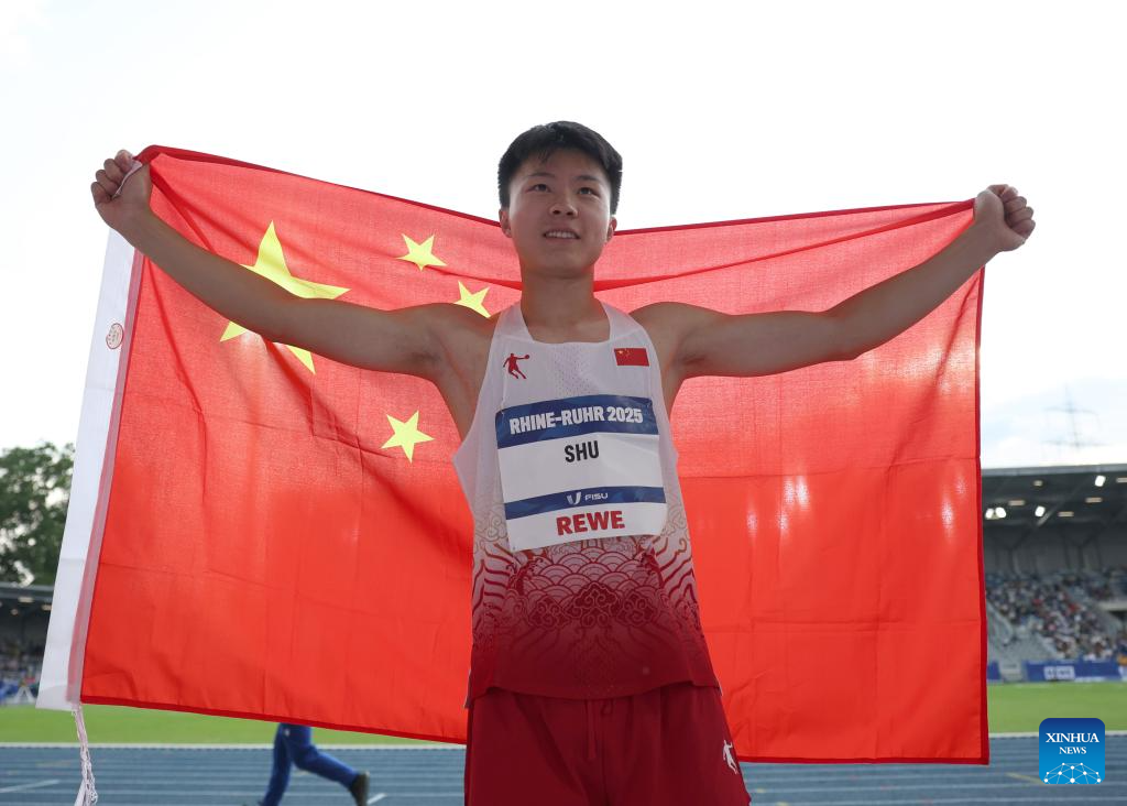 China's Shu Heng wins men's long jump final at Rhine-Ruhr 2025 FISU Universiade