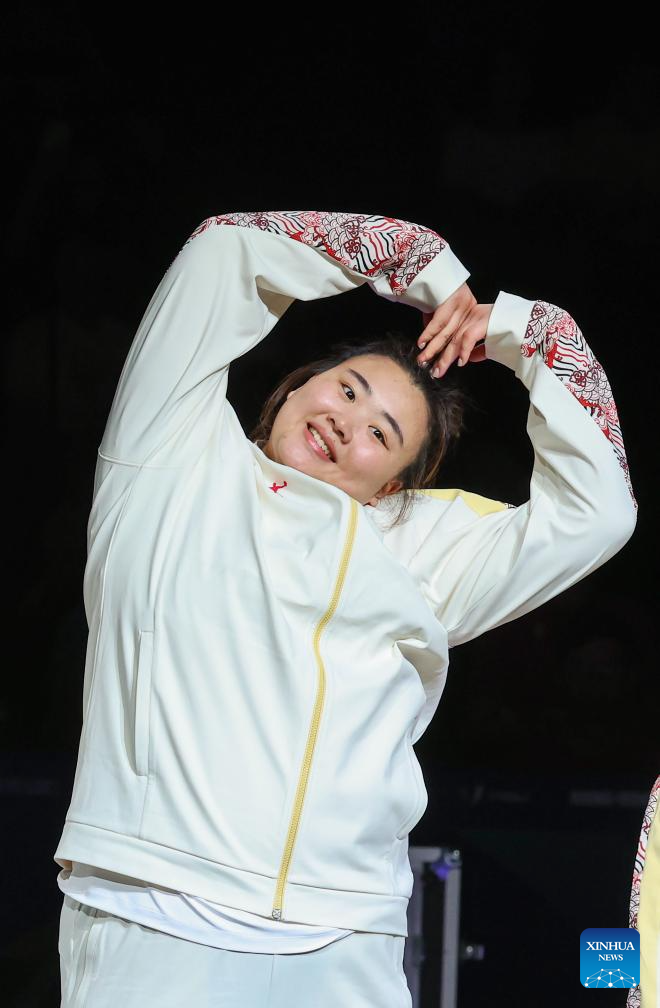 Players of team China celebrate during the awarding ceremony of the women's basketball final between China and the United States at the Rhine-Ruhr 2025 FISU World University Games in Essen, Germany, July 25, 2025. (Xinhua/Zhang Chen)