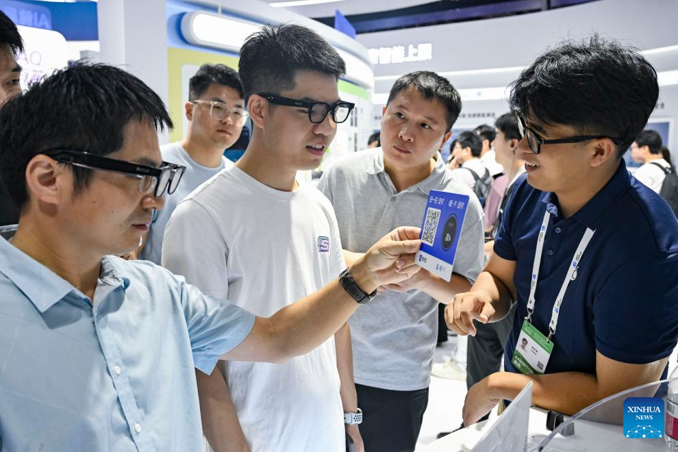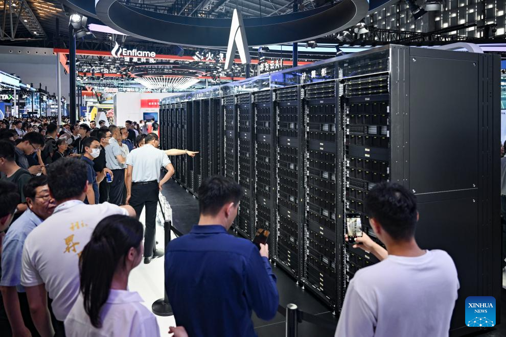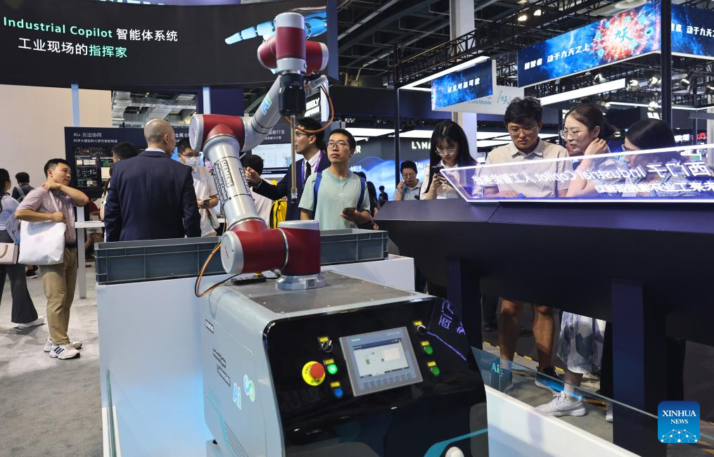 The ongoing 2025 World AI Conference showcases the world's latest AI advancements while providing a platform for visitors to access AI products and technologies. (Xinhua/Fang Zhe)