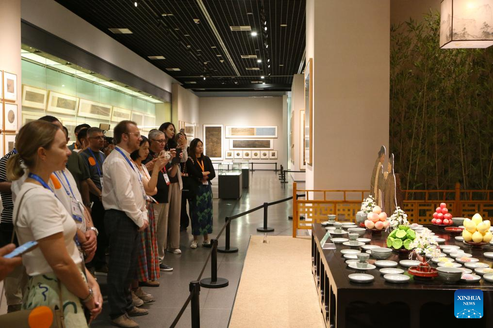 Participants of the Shanghai Cooperation Organization (SCO) Media and Think Tank Summit visit the Kaifeng Museum in Kaifeng, central China's Henan Province, July 26, 2025. The SCO Media and Think Tank Summit is held in Zhengzhou from July 23 to 27. Participants are invited to visit various locations in Henan during the summit. (Xinhua/Chen Wei)