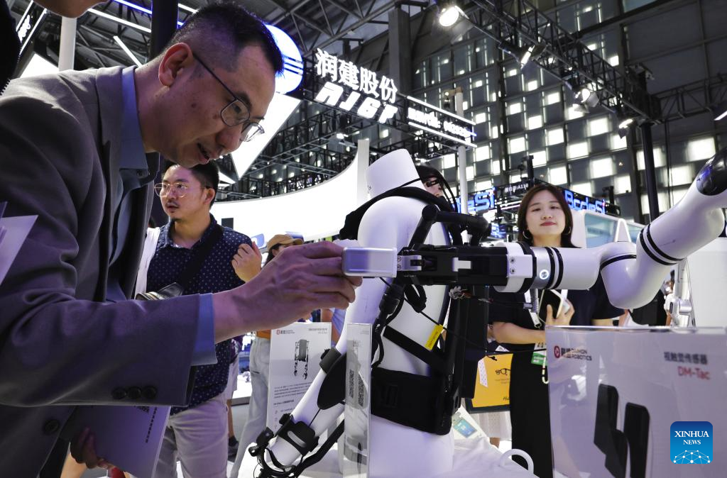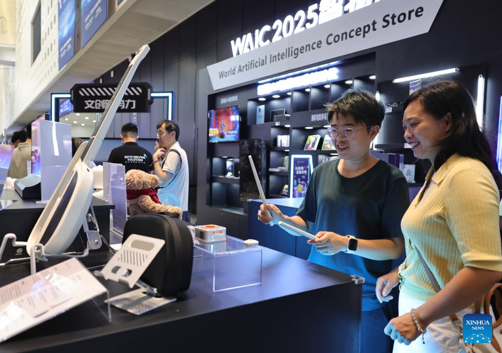 The ongoing 2025 World AI Conference showcases the world's latest AI advancements while providing a platform for visitors to access AI products and technologies. (Xinhua/Fang Zhe)